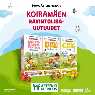 Erityisesti lasten vastustuskyvyn tukemiseen suunnitelluissa herkullisen maistuvissa Koiramäki-tuotteissa seikkailevat Mauri Kunnaksen rakastetut hassunhauskat Koiramäki-hahmot.
