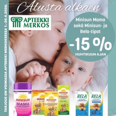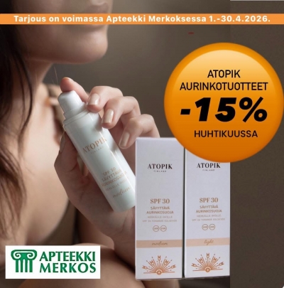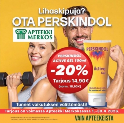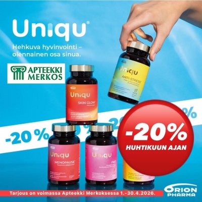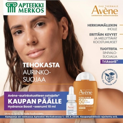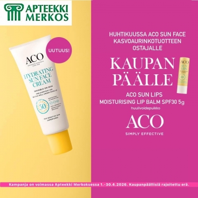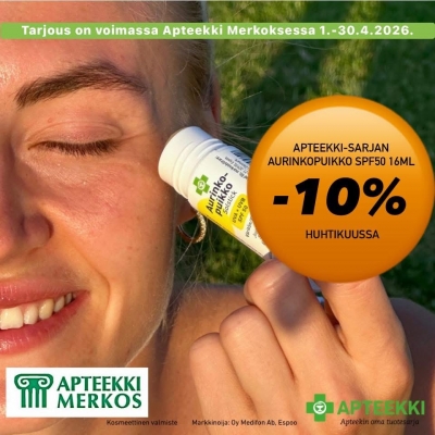 Kampanja on voimassa Apteekki Merkoksessa huhtikuussa 2026 niin kauan kuin kampanjapakkauksia riittää. Kampanjapakkauksia rajoitettu erä.