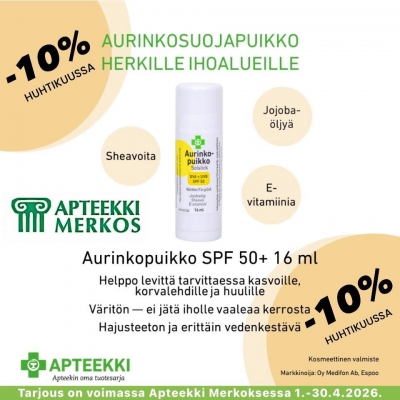 ‼️ Huhtikuun ajankohtaisia aurinkotuotekampanjoita Apteekki Merkoksessa: