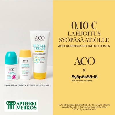 Kampanja on voimassa Apteekki Merkoksessa huhti-toukokuussa 2026 niin kauan kuin kampanjapakkauksia riittää. Kampanjapakkauksia rajoitettu erä.